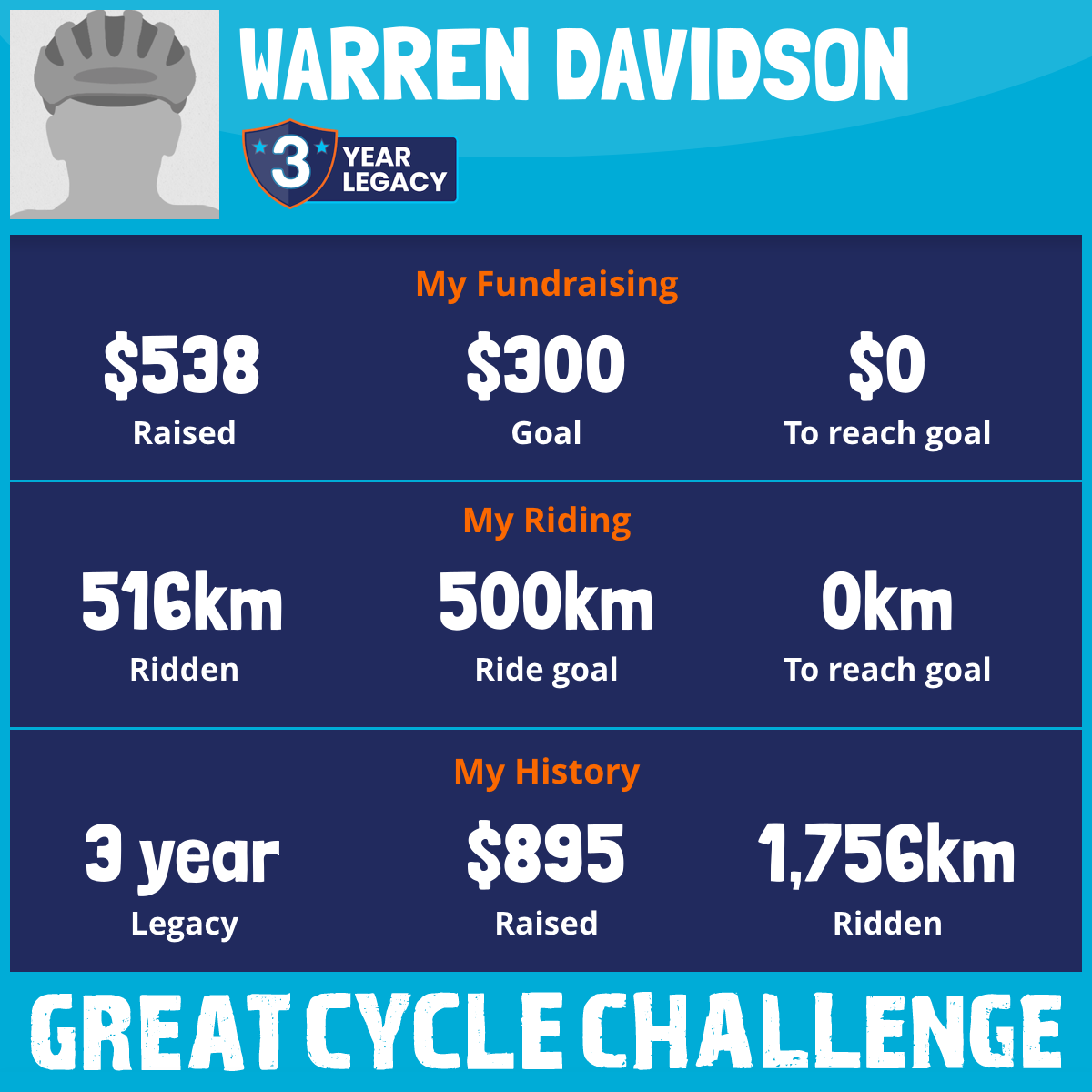 464 km Ridden$160 Raised2023