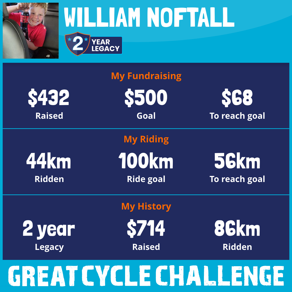 I am riding 100 km in memory of Great Grandparents. Please sponsor me and support my challenge to fight kids' cancer and save little lives.