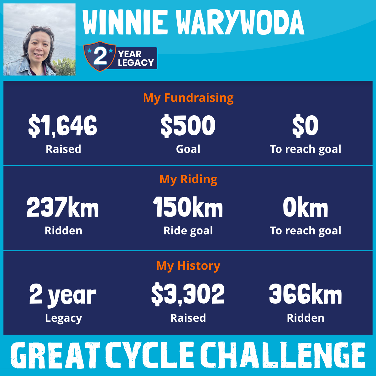 237 km Ridden$1,646 Raised2025