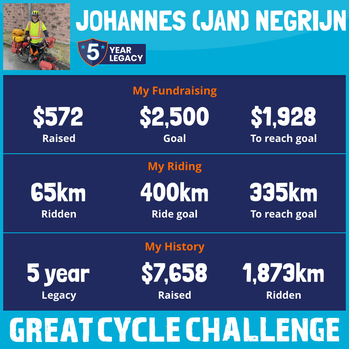 “Good on you, Jan, for doing this again this year. Ride on! :)”